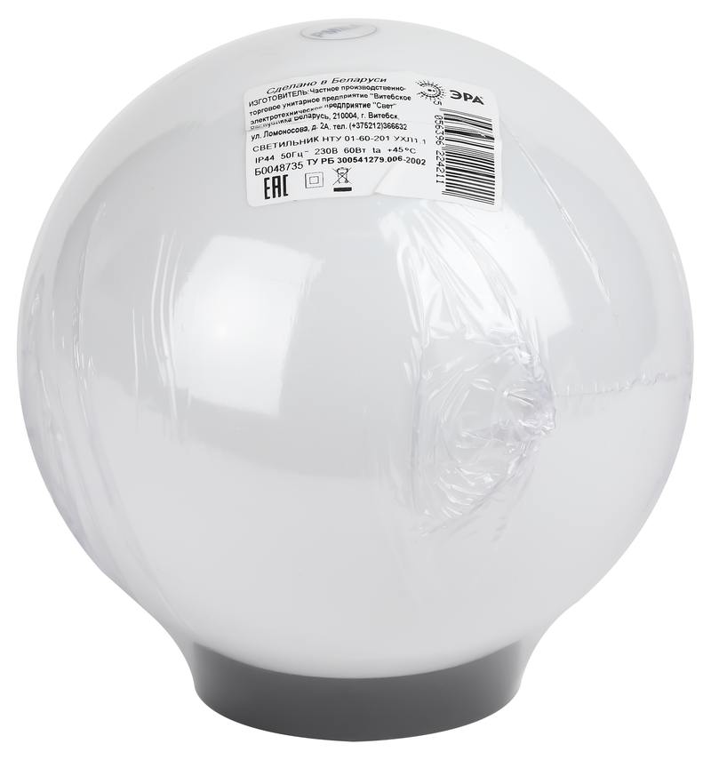 Характеристики Садово-парковый светильник ЭРА НТУ 01-60-201 шар опаловый на опору / кронштейн IP44 Е27 max60Вт d200mm: