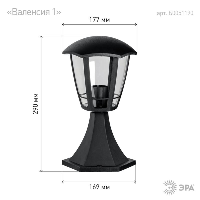 Характеристики Садово-парковый светильник ЭРА НТУ 07-40-003 Валенсия 1 черный 6 гранный напольный IP44 Е27 max40Вт: