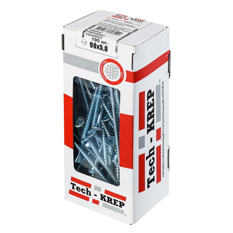 Характеристики Саморез универсальный 90х5.0мм оцинк. (уп.100шт) Tech-KREP 102204: