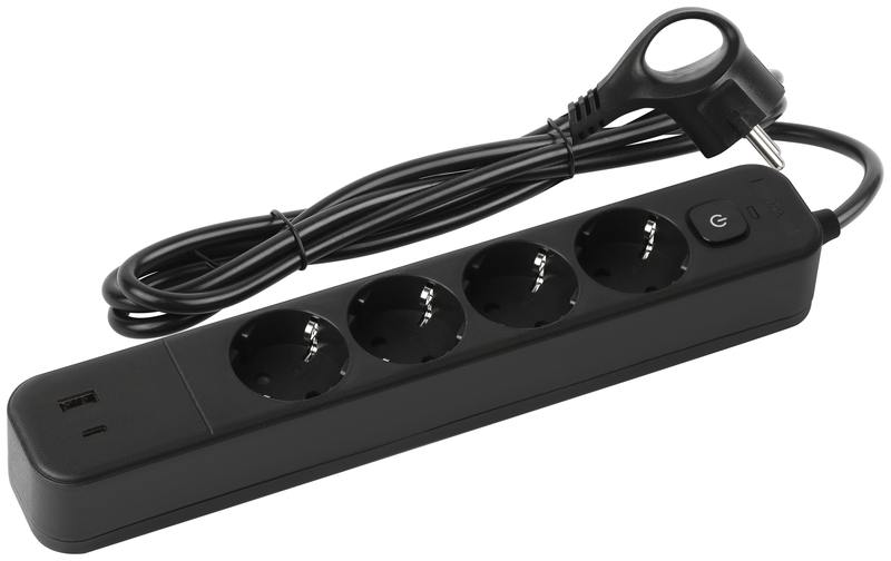 Характеристики Сетевой фильтр ЭРА USF-4es-1,5m-2xUSBAC-B с базовой защитой с заземлением с выкл. 4 розетки+2xUSBA+C 3,1A 1,5м 10А: