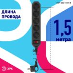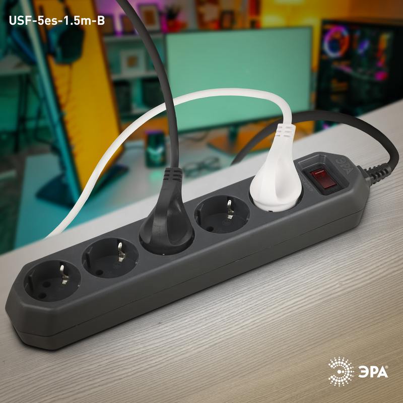 Характеристики Сетевой фильтр ЭРА USF-5es-1.5m-B с базовой защитой с заземлением с выключателем 5 розеток 1,5м 10А черный: