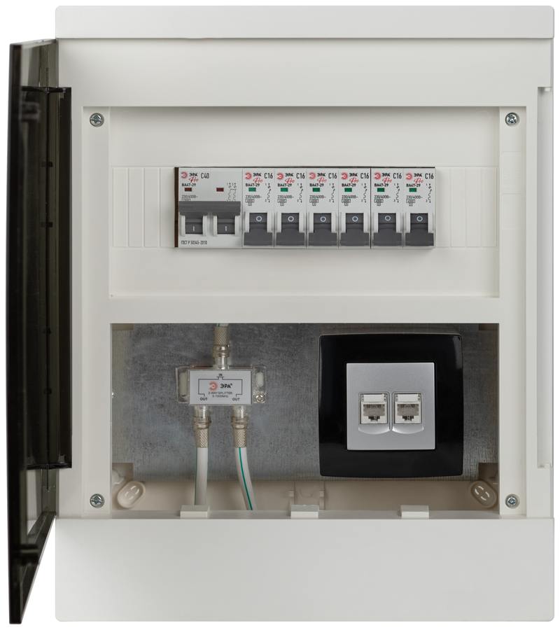 Характеристики Щит распределительный со слаботочным отсеком ЭРА MultiBox bs-12s навесной пластиковый 12 модулей IP41: