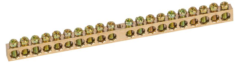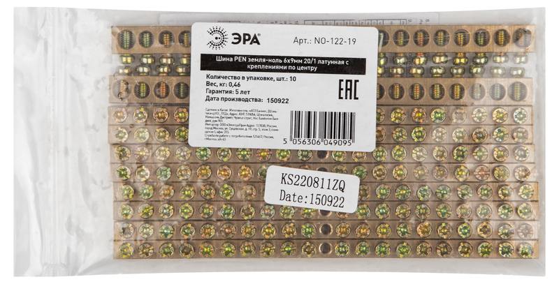 Характеристики Шина ЭРА NO-122-19 PEN земля-ноль 6х9мм 20/1 латунная с креплениями по центру: