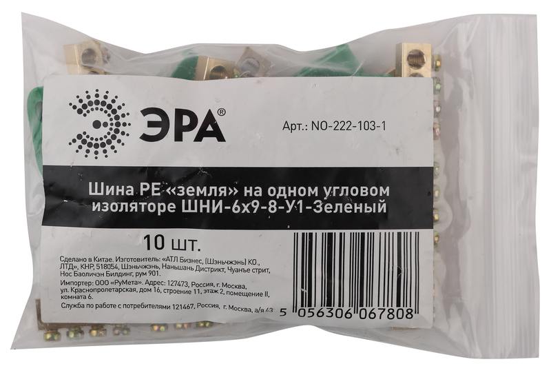 Характеристики Шина ЭРА NO-222-103-1 PE земля на одном угловом изоляторе ШНИ-6х9-8-У1-Зеленый: