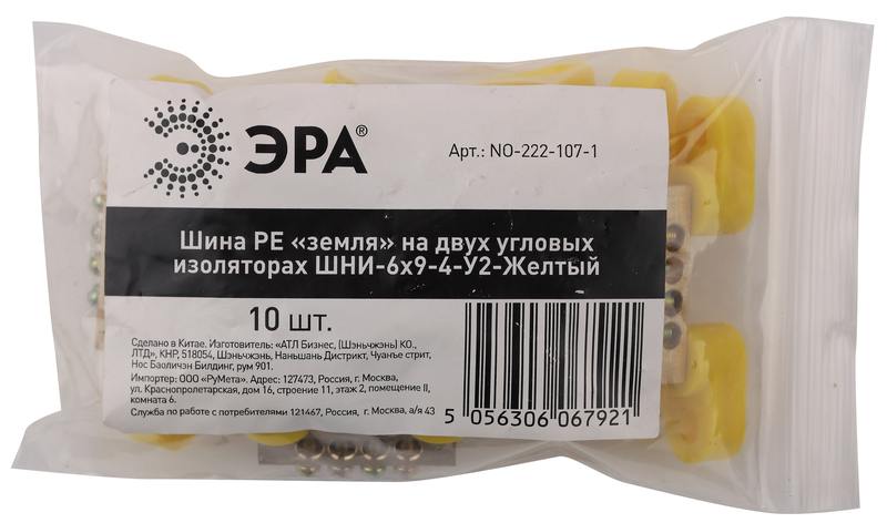 Характеристики Шина ЭРА NO-222-107-1 PE земля на двух угловых изоляторах ШНИ-6х9-4-У2-Желтый: