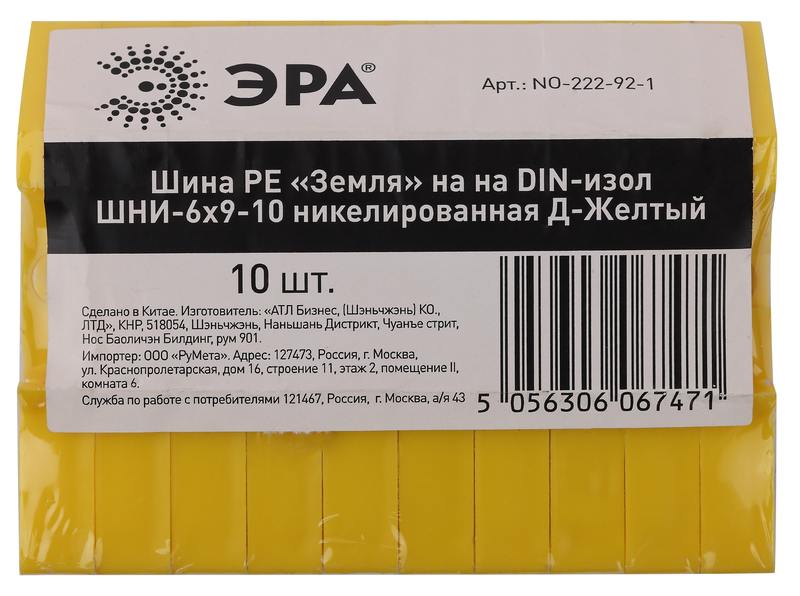 Характеристики Шина ЭРА NO-222-92-1 PE земля на DIN-изоляторе ШНИ-6х9-10 никелированная Д-Желтый: