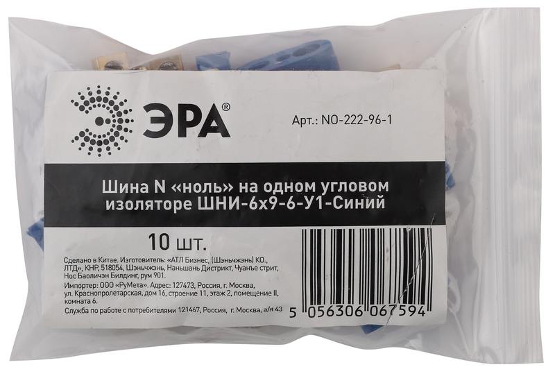 Характеристики Шина ЭРА NO-222-96-1 N ноль на одном угловом изоляторе ШНИ-6х9-6-У1-Синий: