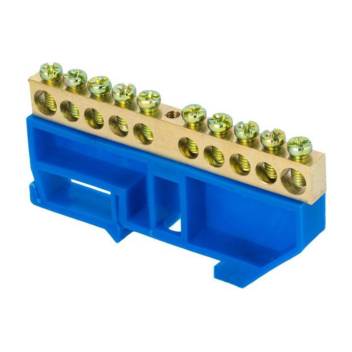 Характеристики Шина нулевая N 6х9 10 отвер. латунь син. изолятор на DIN-рейку PROxima EKF sn0-63-10-d: