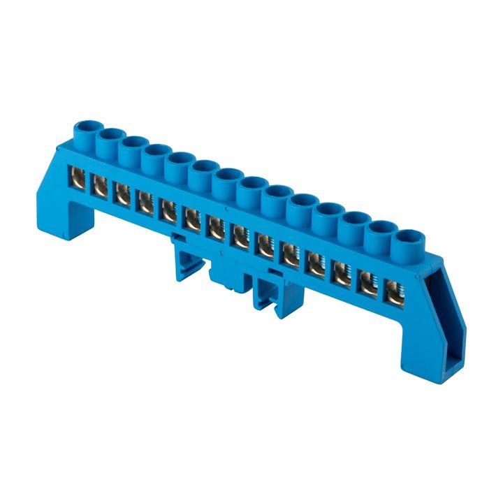 Характеристики Шина нулевая N 8х12 14 отвер. латунь син. нейлоновый корпус комбинированный PROxima EKF sn0-125-14-dn: