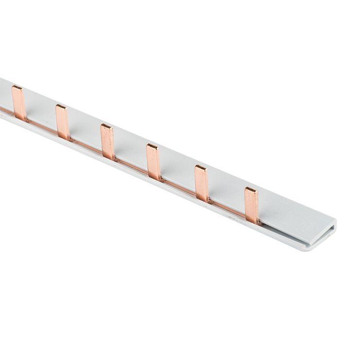Шина соединительная PIN 1ф 63А мед. изол. 54мод (дл.1м) ЭКФ pin-01-63 – аксессуар щитового оборудования, «гребенка». Пластины из меди закреплены в основании из диэлектрического материала, длиной 1 м. Однофазный. Возможно подключение 54 модулей. Предусмотрена изоляция. Номинальный ток 63 А.