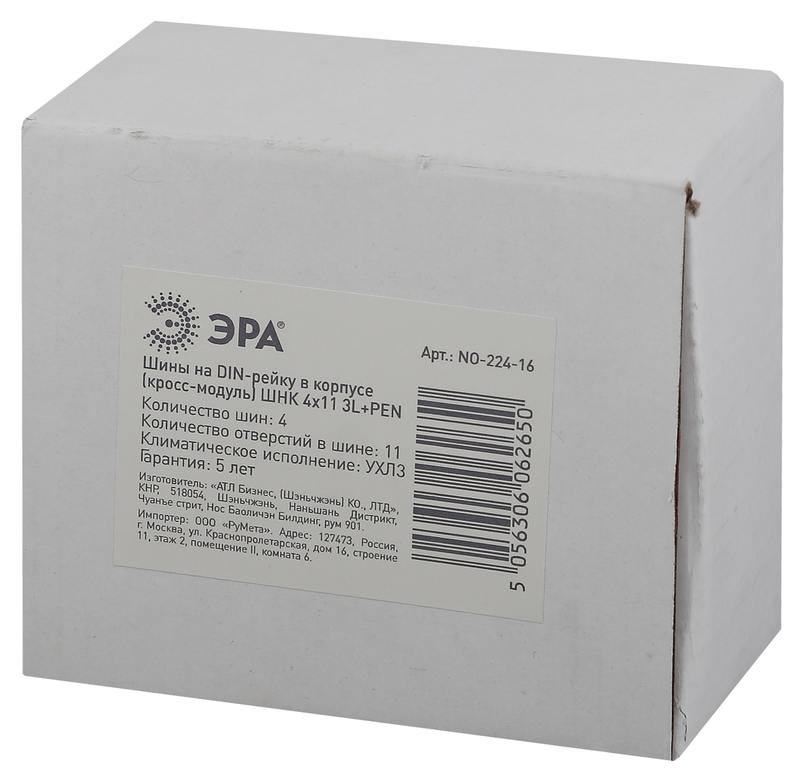 Характеристики Шины на DIN-рейку ЭРА NO-224-16 в корпусе кросс-модуль ШНК 4х11 3L+PEN: