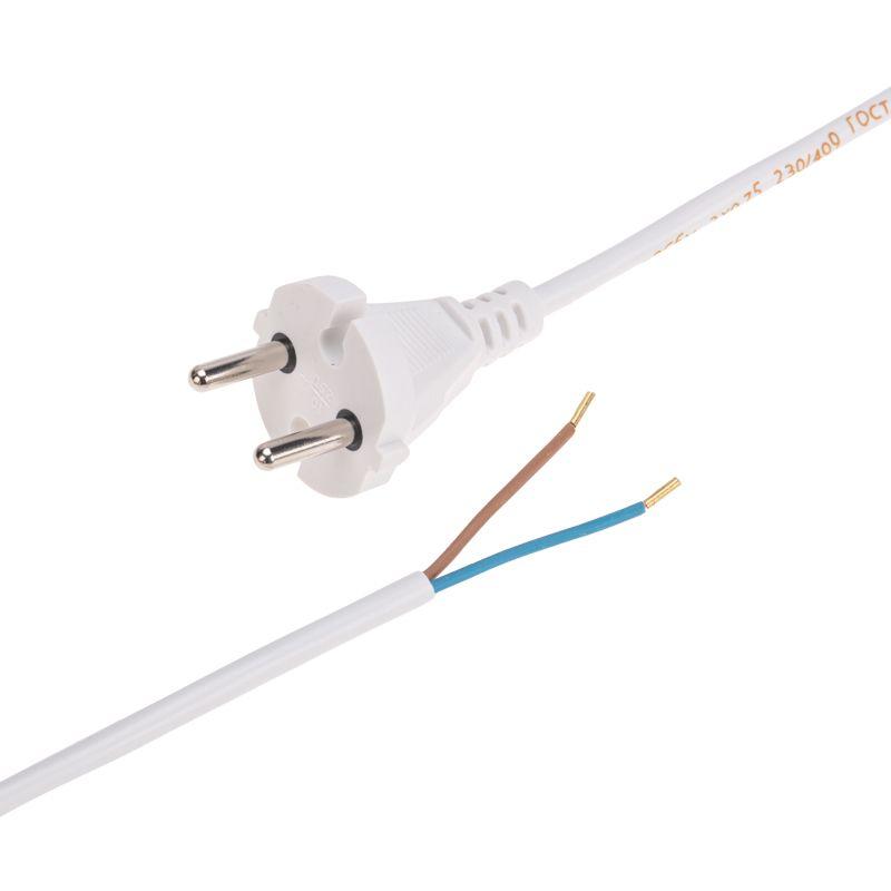 Характеристики Шнур электрический с прямой вилкой 10А 2200Вт ПВС 2х0.75кв.мм 5м бел. Rexant 11-1300: