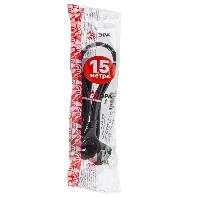 Характеристики Шнур сетевой с вилкой ЭРА U-3×1-1,5m-B с заземлением 1,5м ПВС 3×1мм2 черный: