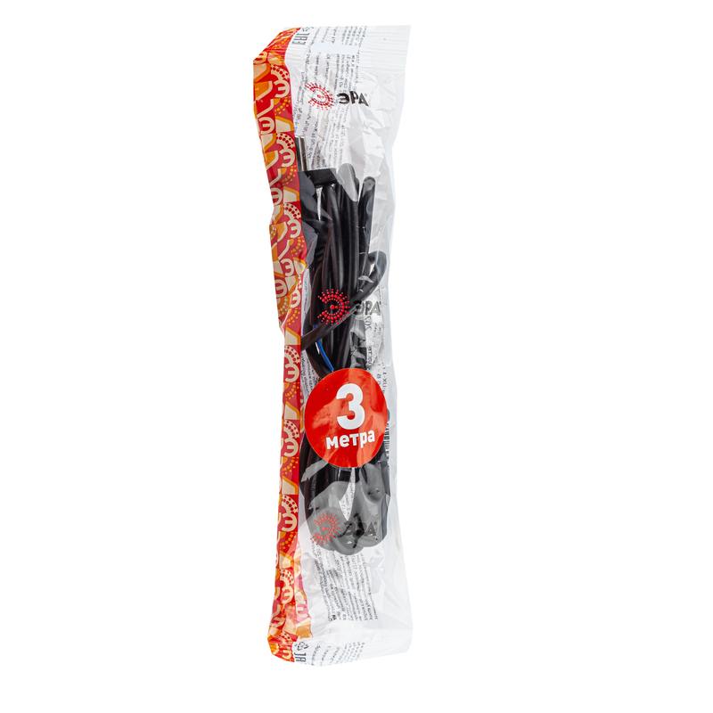 Характеристики Шнур сетевой с вилкой ЭРА UX-2×0,75-3m-B 3м ПВС 2×0,75мм2 черный:
