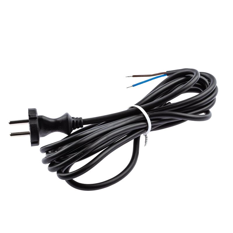 Шнур питания с вилкой UX-2×0,75-3m-B без заземления, провод ПВС с сечением 2х0,75, длина — 3 м, цвет — черный. Провод шнура питания состоит из скрученных жил с надежной ПВХ оболочкой. На конце шнура имеется штепсельная вилка. Изделие предназначено для комплектации или ремонта электрических бытовых приборов.