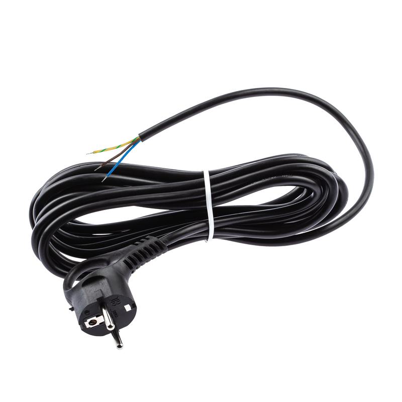 Шнур питания с вилкой UX-3×0,75-5m-B с заземлением, провод ПВС с сечением 3х0,75, длина 5 м, цвет — черный. Провод шнура питания состоит из скрученных жил с надежной ПВХ оболочкой. На конце шнура имеется штепсельная вилка. Изделие предназначено для комплектации или ремонта электрических бытовых приборов.