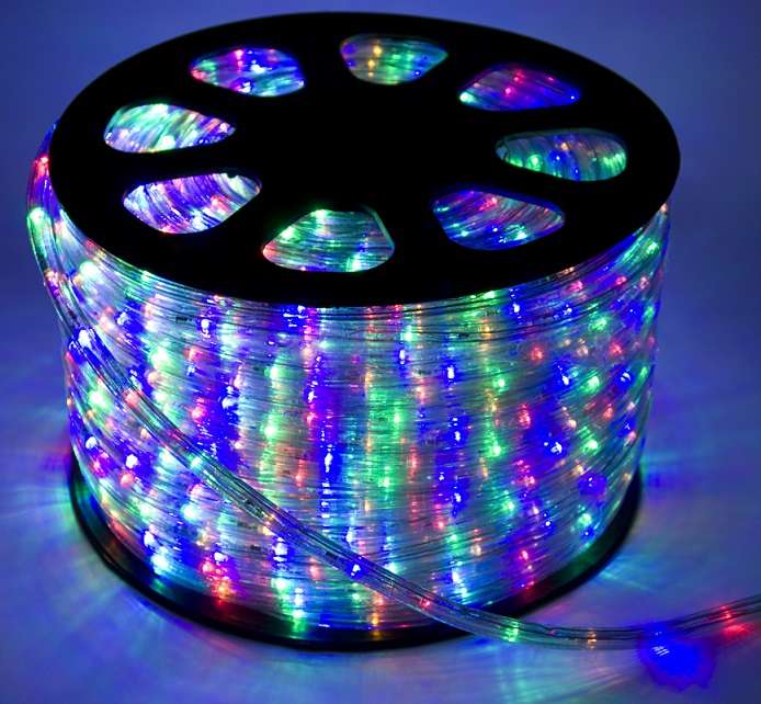 Характеристики Шнур светодиодный Дюралайт 2W 1.8Вт/м IP65 220В d13мм постоянное свечение мультиколор (уп.100м) КОСМОС KOC-DL-2W13-RGB: