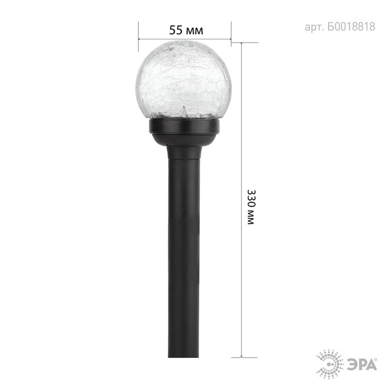 Характеристики SL-PL33-CRAC ЭРА Садовый светильник на солнечной батарее, пластик,стекло, черный, 33 см: