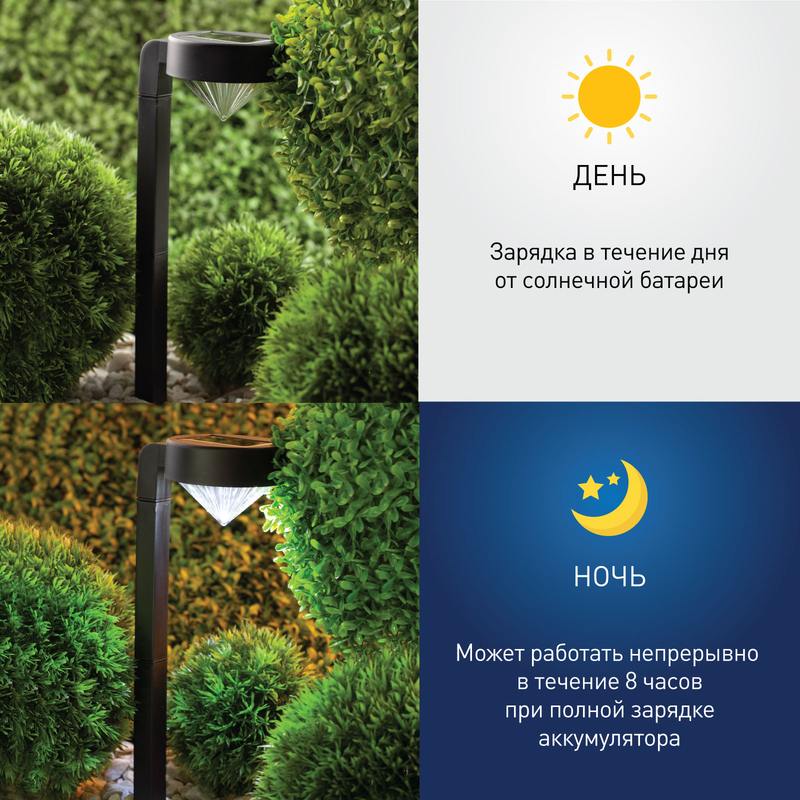 Характеристики SL-PL42-DMD ЭРА Садовый светильник на солнечной батарее, пластик, черный, 42 см: