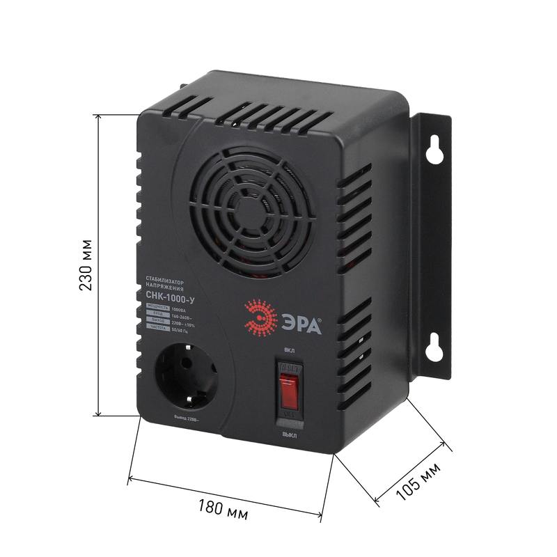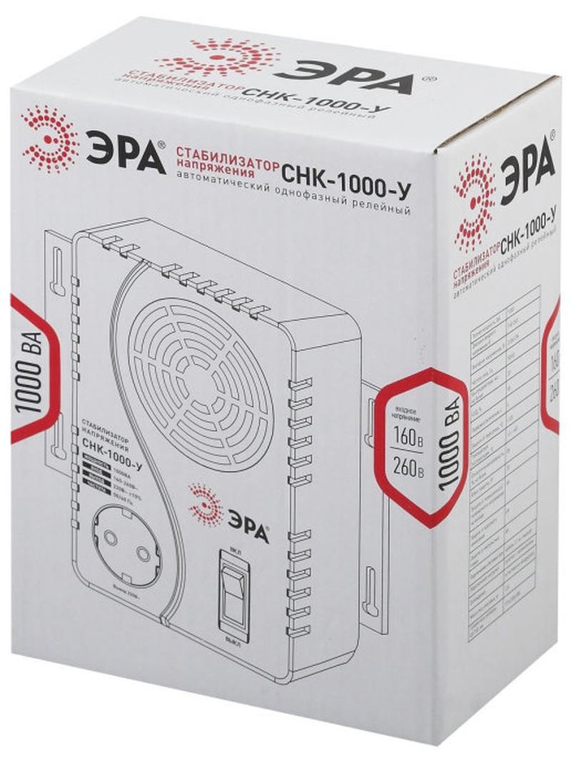 Характеристики СНК-1000-У ЭРА Стабилизатор напр. компакт, универс., 160-260В/220В, 1000ВА: