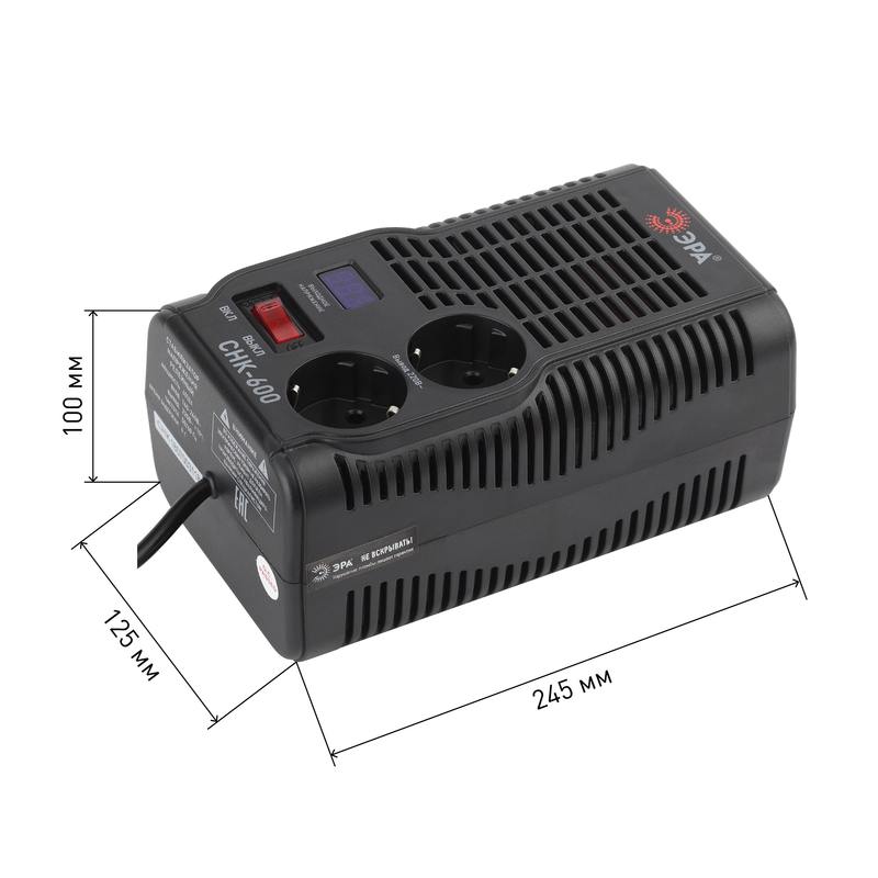 Характеристики СНК-600 ЭРА Стабилизатор напр. компакт, 160-260В/220В, 600ВА: