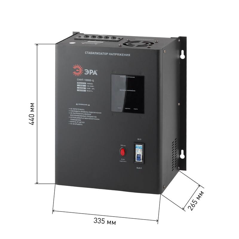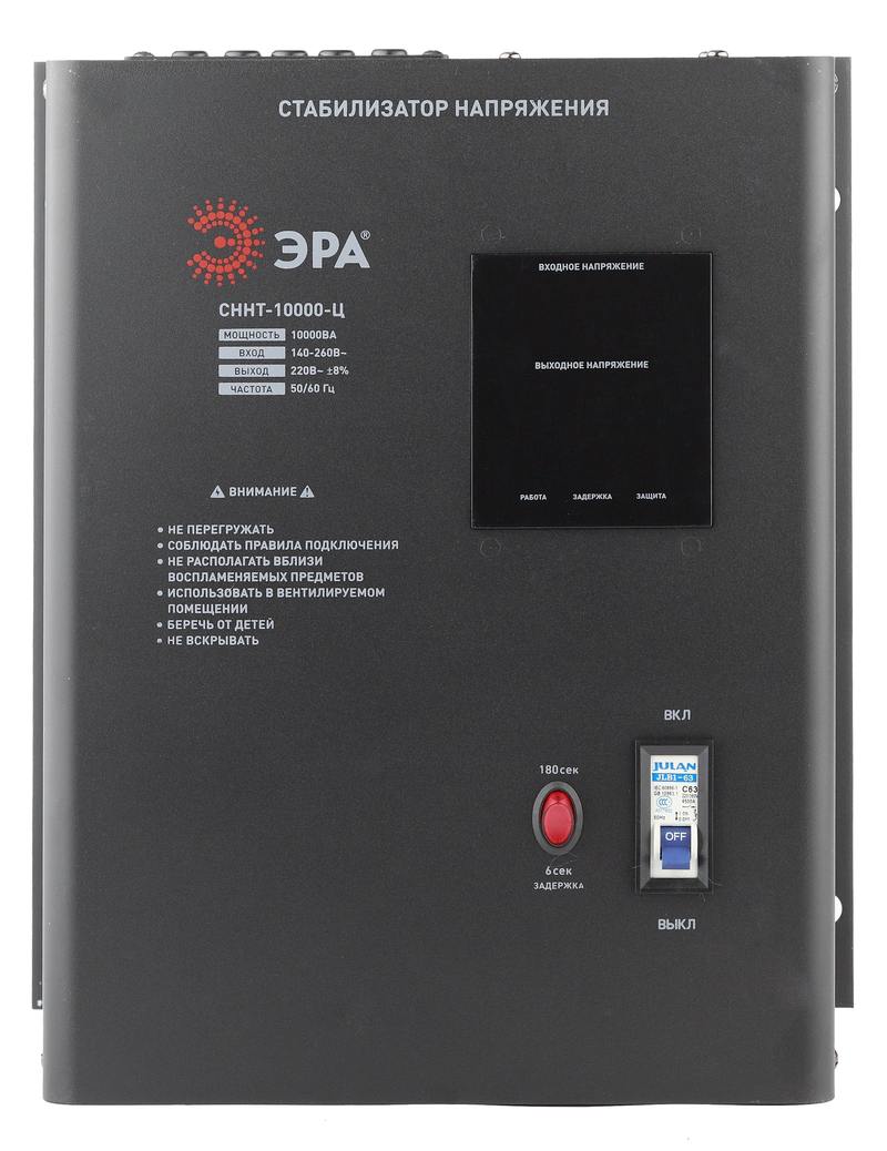 Характеристики СННТ-10000-Ц ЭРА Стабилизатор напряжения настенный, ц.д., 140-260В/220/В, 10000ВА: