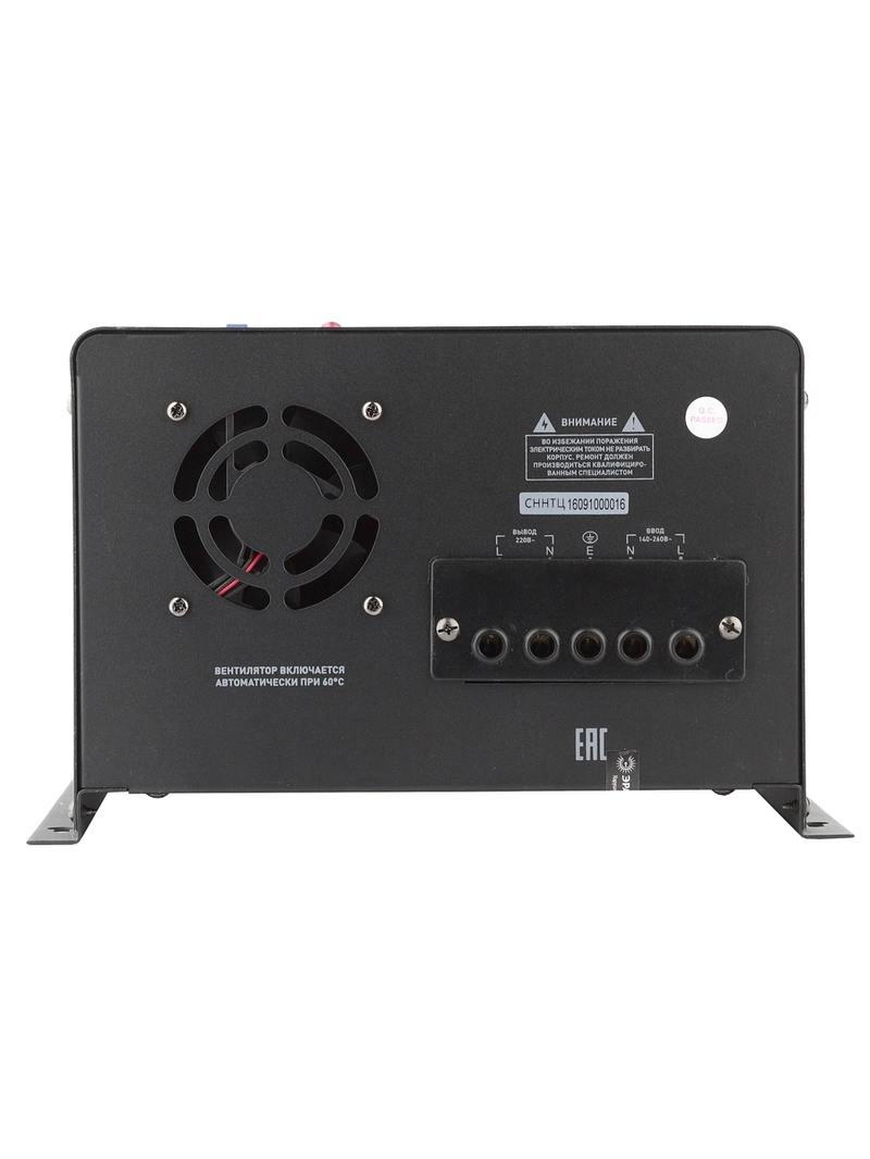 Стабилизатор напряжения настенный однофазный релейный цвет чёрный модели СННТ-10000-Ц. Номинальные характеристики (полная мощность / диапазон входного напряжения): 10000ВА 140-260В . Предназначен для поддержания стабильного однофазного напряжения питания бытовых приборов при отклонениях значений сетевого напряжения. Выбирая стабилизатор, нужно знать, какое электрооборудование будет к нему подключено: один прибор, группу приборов (наиболее чувствительных к перепадам напряжения в сети) либо вся домашняя (офисная) техника. Затем необходимо рассчитать суммарную мощность защищаемых электропотребителей. Основное условие выбора мощности стабилизатора напряжения — суммарная мощность подключаемой к нему нагрузки не должна превышать полной мощности самого стабилизатора (в противном случае автоматика стабилизатора будет их просто отключать). Точные значения мощности можно узнать из паспортных данных Вашего конкретного потребителя. Стабилизатор подбирается с запасом в 25-30% к его полной мощности.