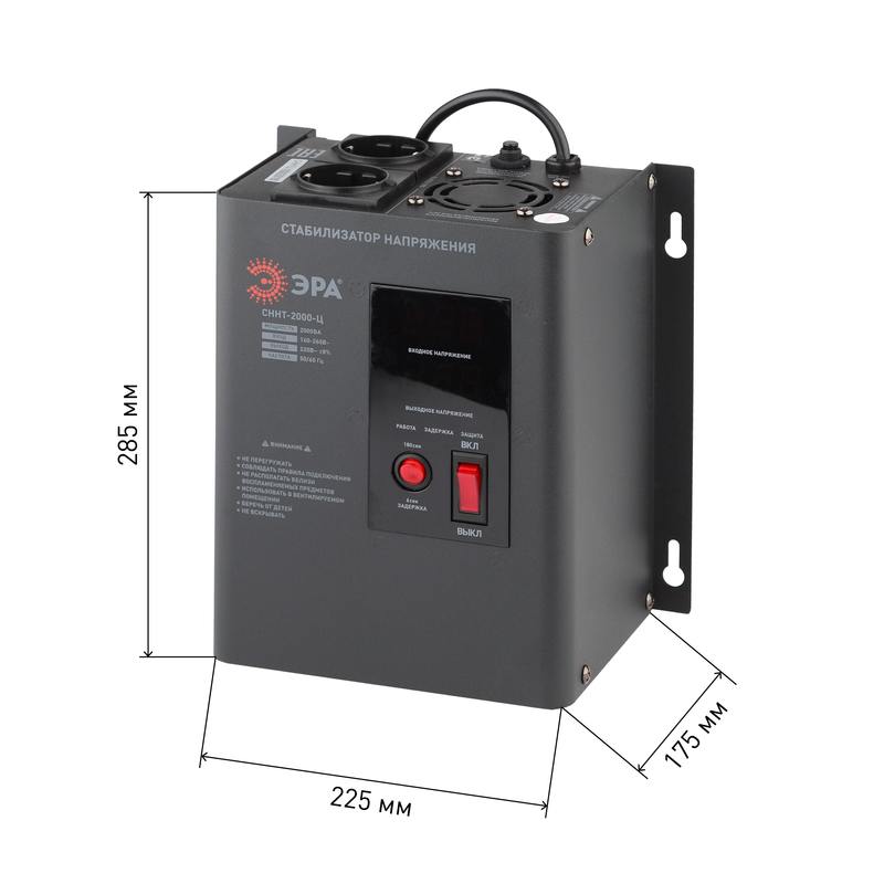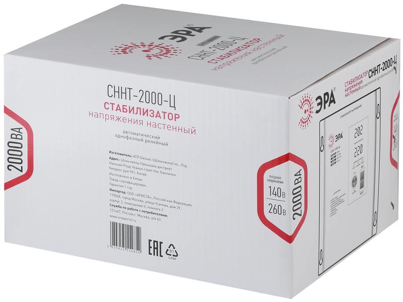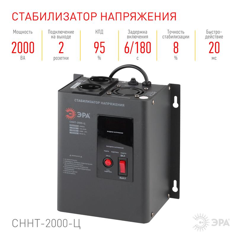 Характеристики СННТ-2000-Ц ЭРА Стабилизатор напряжения настенный, ц.д., 140-260В/220/В, 2000ВА: