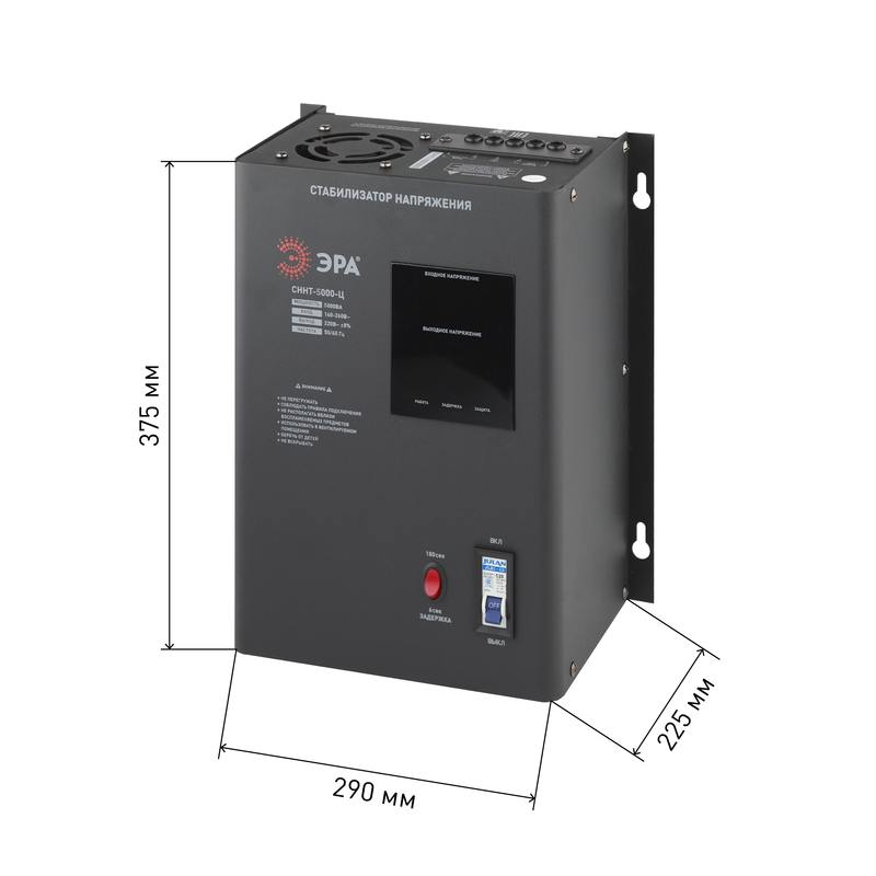 Характеристики СННТ-5000-Ц ЭРА Стабилизатор напряжения настенный, ц.д., 140-260В/220/В, 5000ВА: