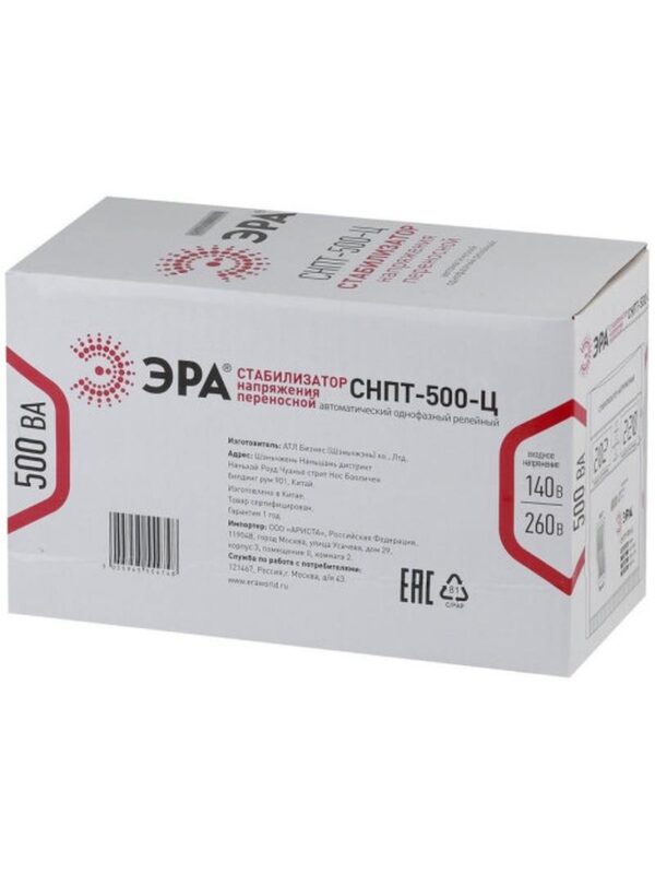 Характеристики СНПТ-500-Ц ЭРА Стабилизатор напряжения переносной, ц.д., 140-260В/220/В, 500ВА: