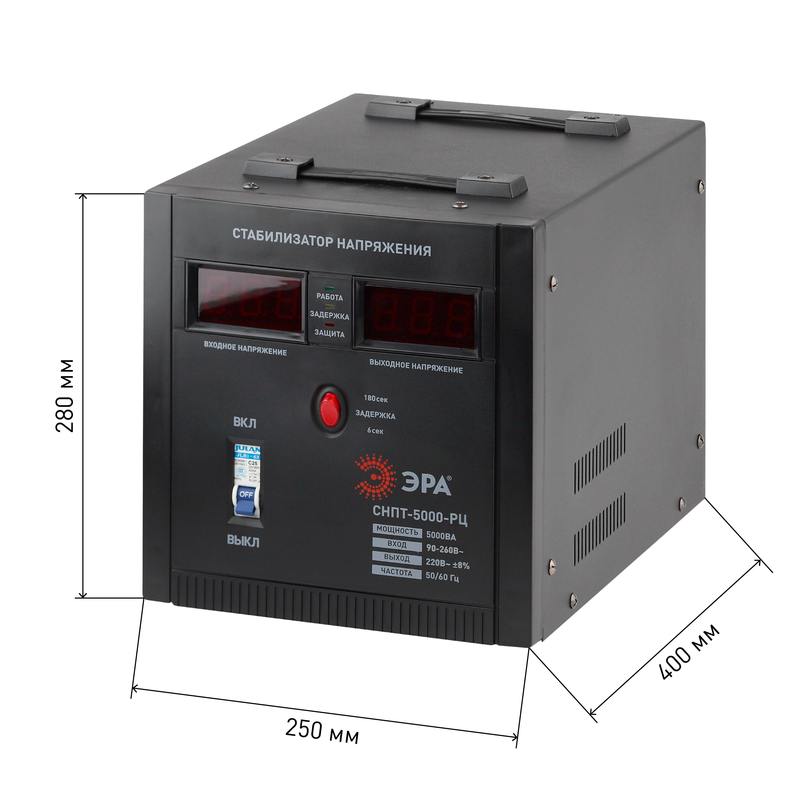 Характеристики СНПТ-5000-РЦ ЭРА Стабилизатор напряжения переносной, ц.д., 90-260В/220В, 5000ВА: