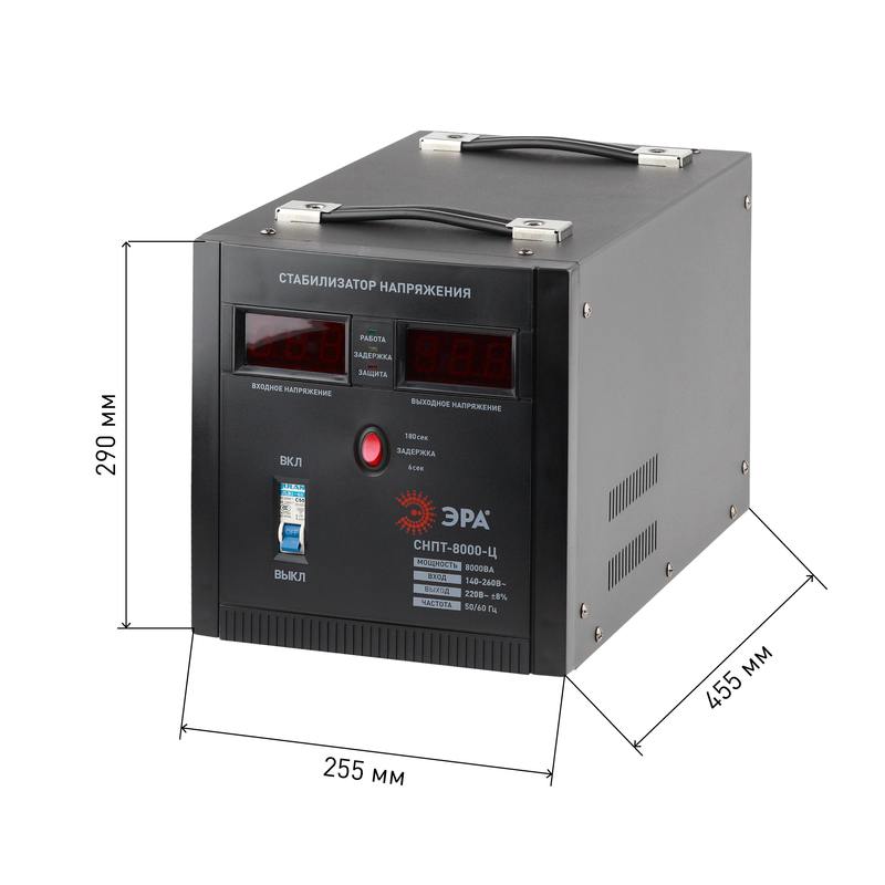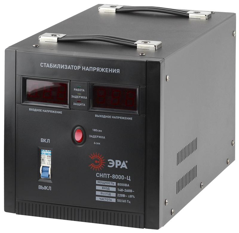 Характеристики СНПТ-8000-Ц ЭРА Стабилизатор напряжения переносной, ц.д., 140-260В/220/В, 8000ВА: