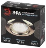 Характеристики ST3 GD Светильник ЭРА штампованный MR16,12V/220V, 50W золото: