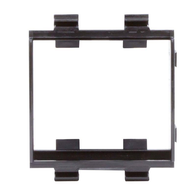 Каркас на 2 модуля для монтажа электроустановочных изделий «Viva». Назначение: монтаж электроустановочных изделий в пластиковые короба «In-liner Front», напольную башенку BUS, алюминиевые короба и колонны «In-liner Aero». Характеристики: материал – АБС-пластик; с двух внешних сторон расположены замки, предназначенные для соединения одинаковых каркасов в ряд и для использования под одной сплошной рамкой. Каркасы для разных серий ЭУИ между собой не соединяются, но монтироваться в ряд под одной рамкой. Цвет черный