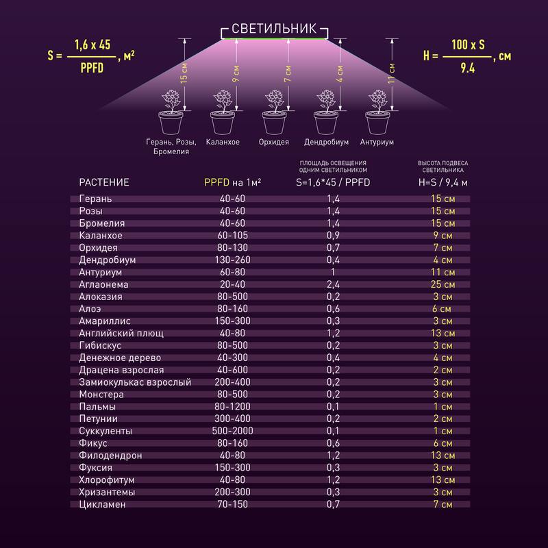 | Фотосинтетический фотонный поток (рассчетные данные), мкмоль/с | 45 |