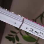 Практичность лампы для выращивания обусловлена наличием удобного и простого крепления. Вы можете непрерывно соединить в линию до 10 светильников! Рекомендованная высота подвеса — от 10 до 35 см. Корпус выполнен из прочного пластика. Светильник отличается отсутствием пульсаций. Фотобиологическая опасность лампы близка к 0. Для крепления на подвес в комплект включены скобы, вокруг которых можно легко закрепить нитку или бечевку и регулировать высоту по мере роста цветов.