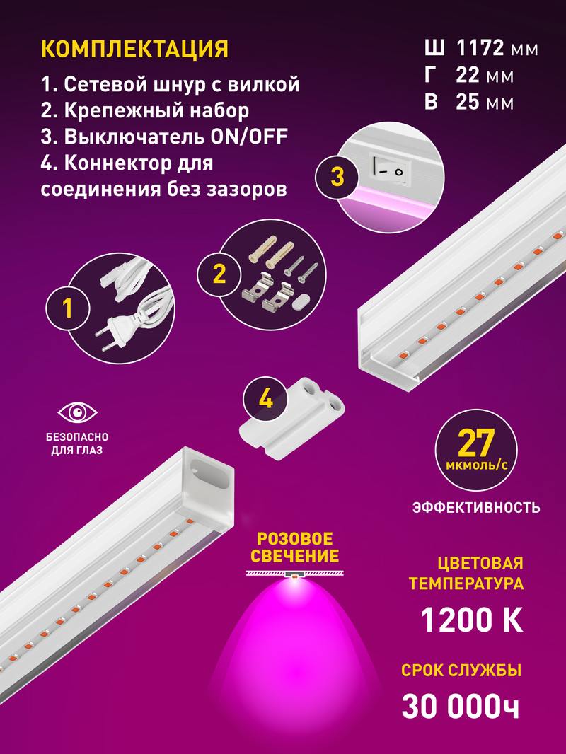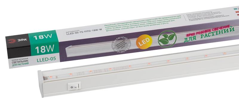 Характеристики Светильник для растений, фитолампа светодиодная линейная ЭРА LLED-05-T5-FITO-18W-W розового свечения 18 Вт: