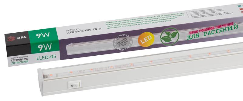 Характеристики Светильник для растений, фитолампа светодиодная линейная ЭРА LLED-05-T5-FITO-9W-W розового свечения 9 Вт: