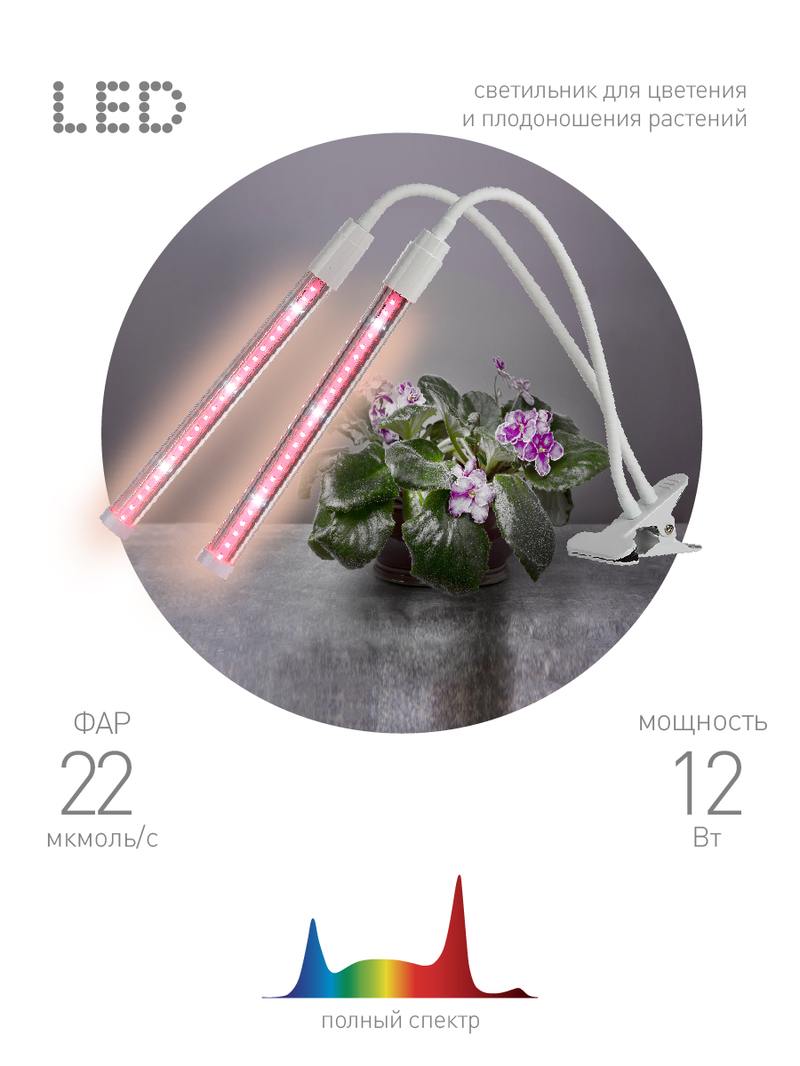 Характеристики Светильник для растений на прищепке ЭРА FITO-20W-АLED-L полного спектра 12 Вт белый: