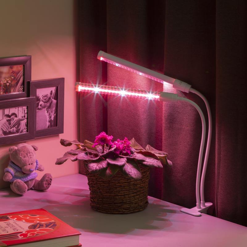 | Преимущества | Универсальный светильник на прищепке полного спектра, но с красным отсветом. Подойдет для любого растения, так как в спектре излучения присутствуют все длины волн. Основной упор в излучении сделан на поддержание оптимального фотосинтеза и набор массы растением. Светильник имеет легко регулирующееся основание, два независимых по работе гнущегося плафона. Белый цвет корпуса легко вписывается в любой интерьер. Крепление как к подоконнику, так и к любой столешнице. |