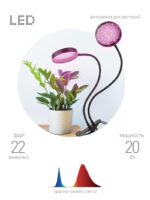 Стильный домашний фитосветильник с двумя круглыми плафонами на гибких стойках. Благодаря тугой металлической прищепке быстро и надёжно фиксируется на подоконнике, столешнице, полке. алюминиевый корпус прочен и обеспечивает хорошую теплоотдачу светодиодов. Направление света каждого из светодиодных плафонов легко регулируется. Округлая форма плафонов выглядит стильно и обеспечивает широкий световой поток. Прищепка позволяет устанавливать фитосветильник как горизонтально, так и вертикально. Прибор выглядит аккуратно и современно, отлично вписывается в любой интерьер.