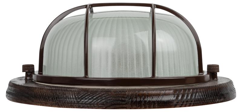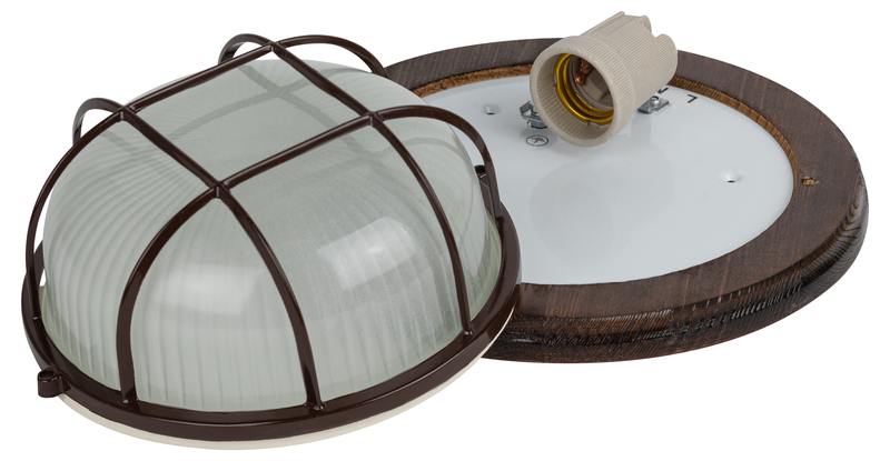 Светильник серии "Кантри", в дизайне которой применено натуральное дерево. Некоторые модели дополнительно защищены деревянной решеткой. Диапазон рабочих температур: от +1°С до +130°С. Материал рассеивателя: селикатное стекло. Материал корпуса: сталь, дерево (орех). Источник света: лампа с цоколем Е27. Габариты: 220х220х92 мм. Степень защиты от окружающей среды: IP54. Данные светильники предназначены для освещения административно-бытовых, производственных помещений и мест общественного пользования.