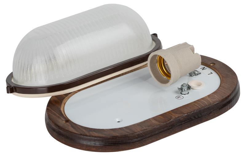 Светильник является частью оригинальной серии "Кантри", в дизайне которой используются элементы натурального дерева. Некоторые модели серии дополнены защитной деревянной решеткой для максимальной надежности. Эти светильники предназначены для освещения внутренних помещений и открытых площадей административно-бытовых, производственных объектов и мест общественного пользования. Диапазон рабочих температур: от +1°С до +130°С. Материал рассеивателя: селикатное стекло. Материал корпуса: сталь, дерево оттенка орех. Источник света: лампа с цоколем Е27. Габариты: 232х140х80 мм. Степень защиты от окружающей среды: IP54.