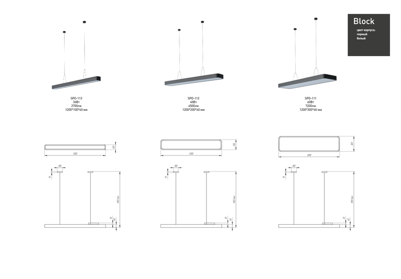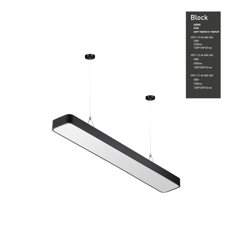 Характеристики Светильник LED ЭРА Geometria SPO-111-B-40K-060 Block 60Вт 4000К 7200Лм IP40 1200*300*60 черный подвесной: