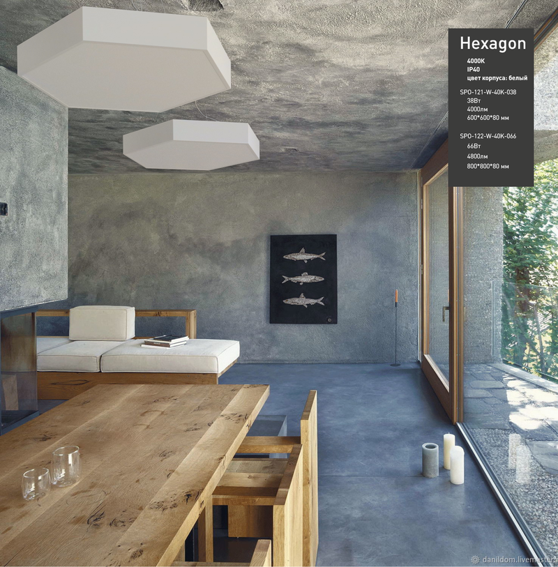 Характеристики Светильник LED ЭРА Geometria SPO-122-W-40K-066 Hexagon 66Вт 4000К 4800Лм IP40 800*800*80 белый подвесной:
