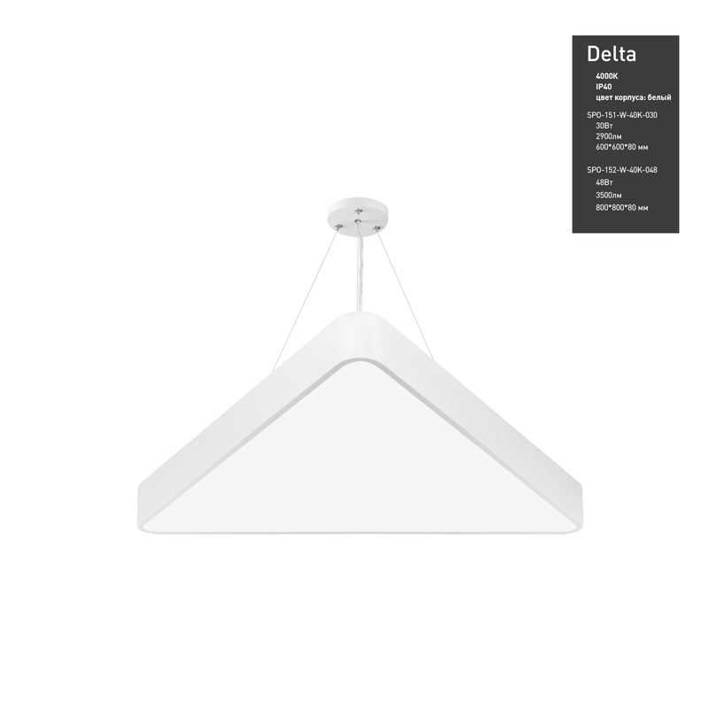 Характеристики Светильник LED ЭРА Geometria SPO-151-W-40K-030 Delta 30Вт 4000К 2900Лм IP40 600*600*80 белый подвесной: