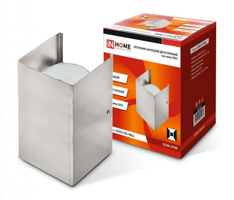 Характеристики Светильник накладной двусторонний GX53S-WALL 2SC под лампу GX53 230B сатин хром IN HOME: