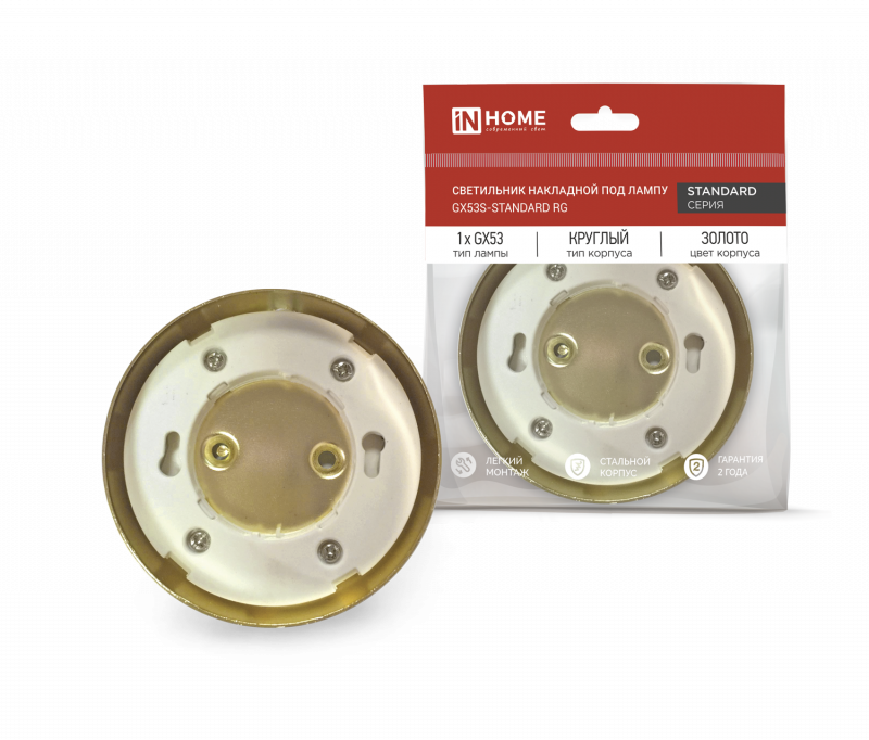 Характеристики Светильник накладной GX53S-standard RG металл под лампу GX53 золото IN HOME: