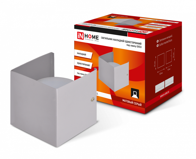 Характеристики Светильник накладной односторонний GX53S-WALL 1MG под лампу GX53 230B матовый серый IN HOME:
