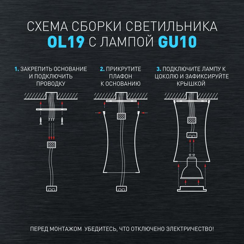 Накладной светильник OL19 WH смотрится изящно и легко в любом интерьере. Мягкие изогнутые формы светильника легко комбинировать с мебельной фурнитурой и декором, придавая законченность интерьеру помещения. Цоколь для источника света GU10, напряжение питания ~230В 50/60Гц, материал алюминий, цвет светильника белый, размер D65*H100мм, максимальная мощность лампы 50Вт, степень защиты IP20